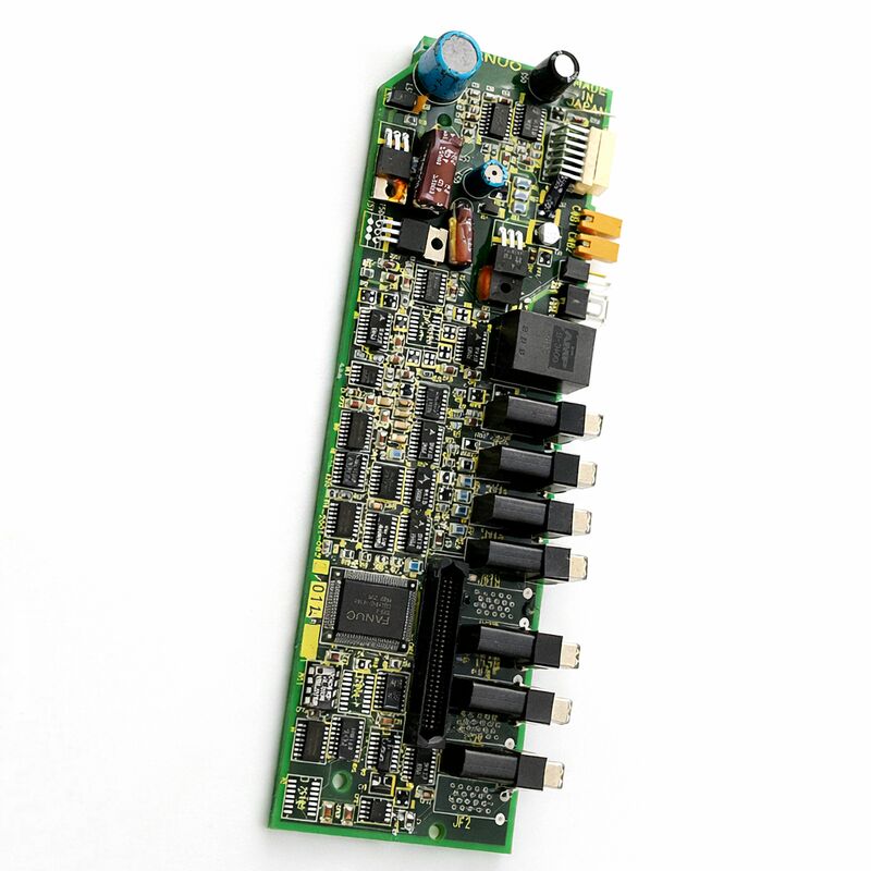 Η πλακέτα ελέγχου — η σειρά A20B-2001 — χειρίζεται όλη την ευφυΐα: την επεξεργασία DSP που εκτελεί τους αλγορίθμους ελέγχου σερβοκινητήρα, τη διεπαφή σειριακής επικοινωνίας με τον ελεγκτή CNC μέσω του καλωδίου οπτικής ίνας της FANUC και τα σήματα οδήγησης πύλης που λένε στα τρανζίστορ ισχύος πότε να αλλάξουν.